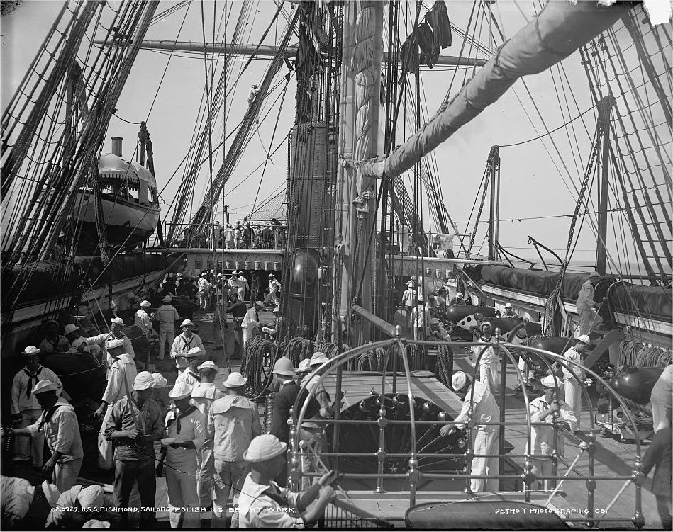 252k | USS Richmond polishing brass work, circa 1890-1901 | Library of Congress photo # 4a14701v Detroit Photographic Co. Collection | |