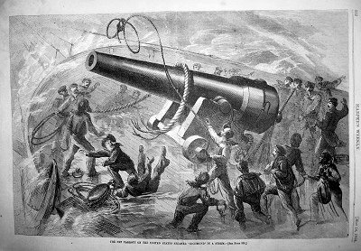 "THE PET PARROTT OF THE UNITED STATES STEAMER “RICHMOND” IN A STORM" May 14, 1864 Harper’s Weekly |
