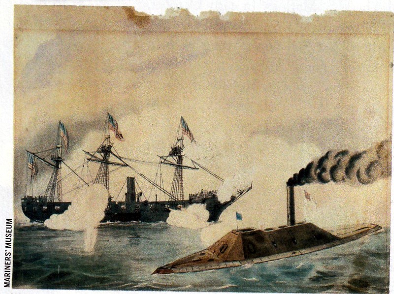 183k | A Robert Fulton Weir stetch of USS Richmond engaging CSS Tennessee during the Battle of Mobile Bay, 5 August 1864.