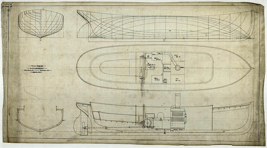 149k | USS Richmond's Steam Barge "blueprint", 1 September 1888. Department of the Navy. Bureau of Construction and Repair.