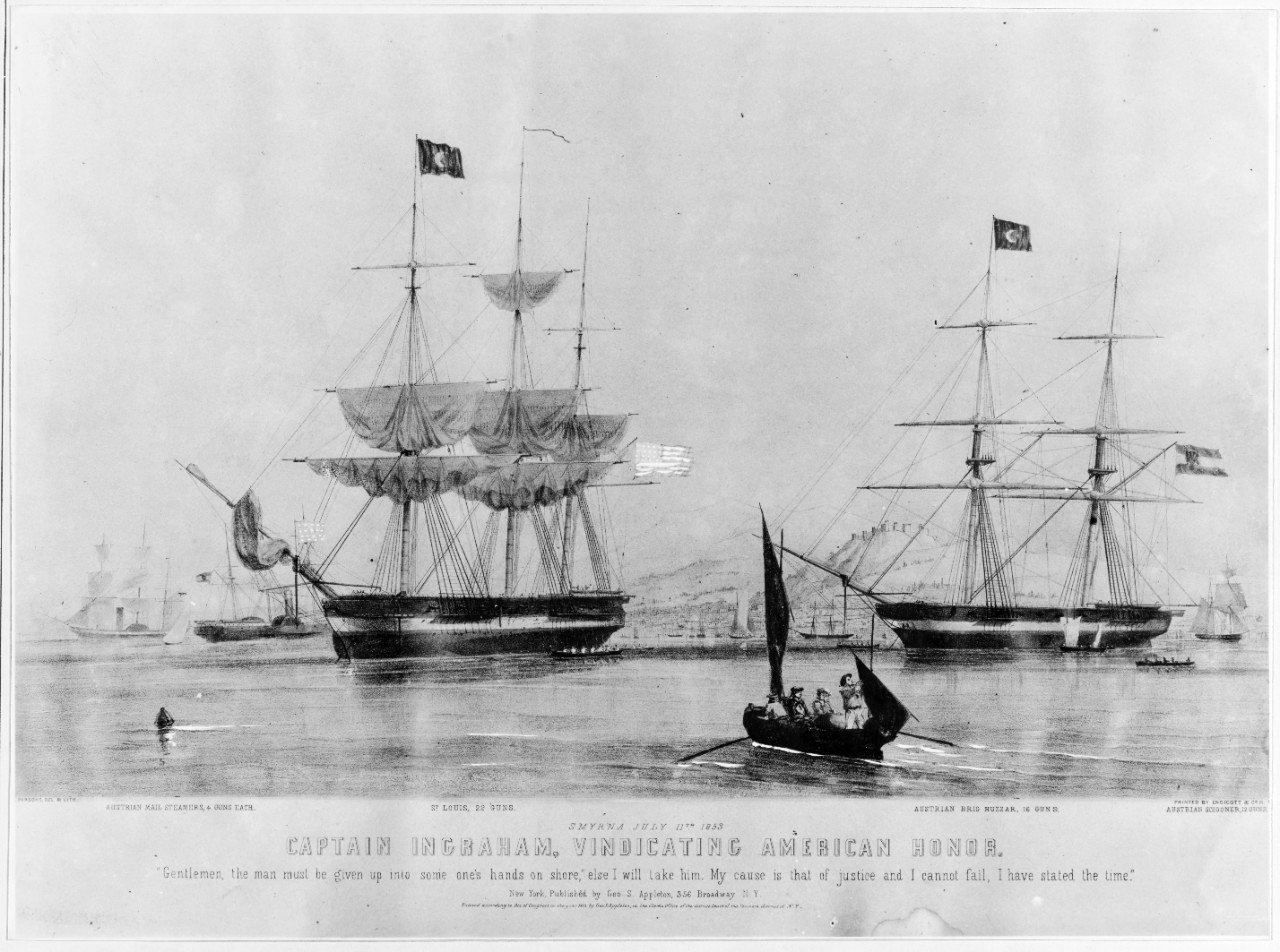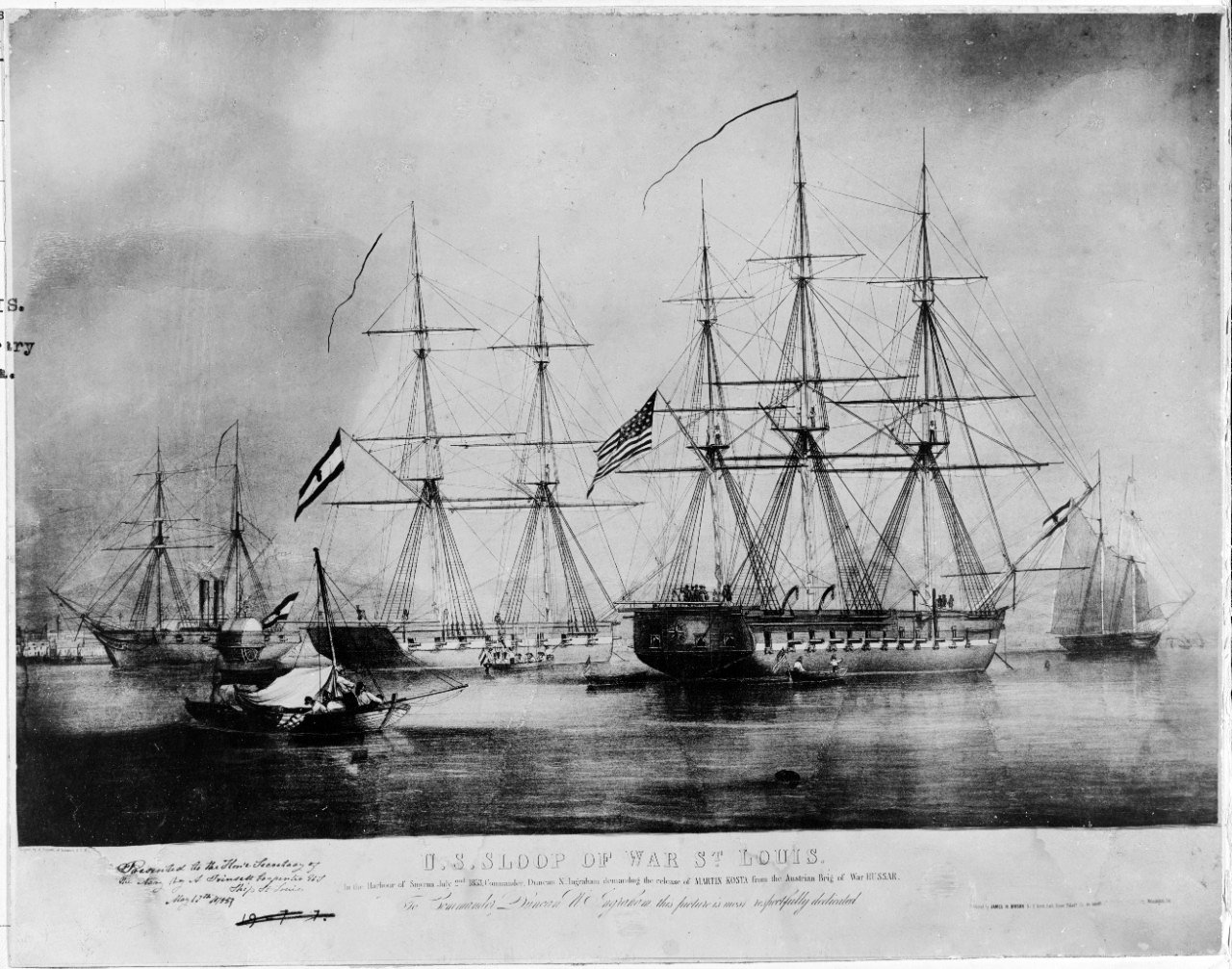 098605606 | 285k | Sloop-of-war USS St Louis in the Harbor of Smyrna 2 July 1853, CDR. Duncan N. Ingraham demanding the release of Martin Kosta from the