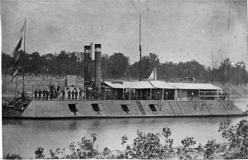 123k | USS Louisville on the Red River. Photographed by McPherson & Oliver, No. 132 Canal Street, New Orleans. 1 January 1864.