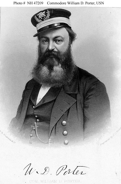 The ship in the left background is USS Mississippi. A "90-day" gunboat is in the right distance.