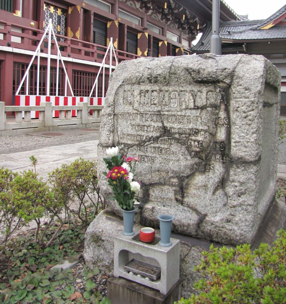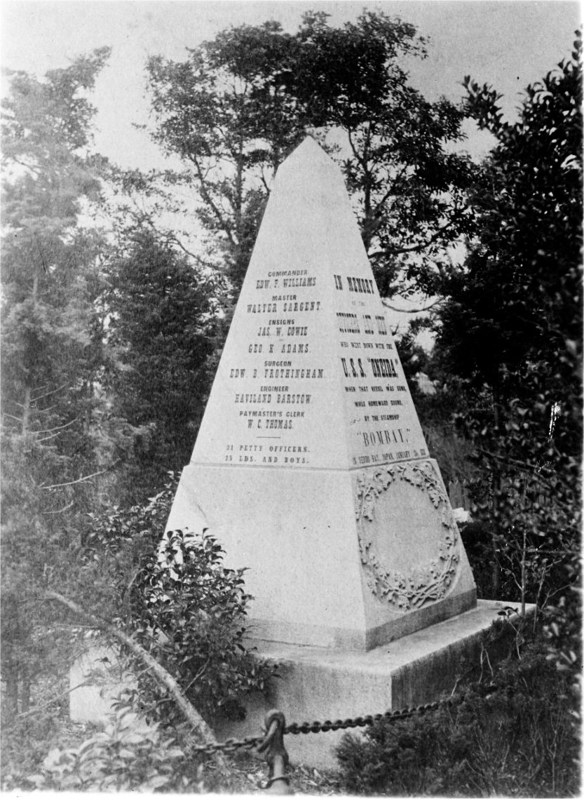 345k | Gravestone in Japan at the grave of the USS Oneida crew members buried there. The inscription reads: IN MEMORY OF SOME OF THE UNKNOWN DEAD OF THE U.S.S. ONEIDA, LOST IN YEDDO BAY JANUARY 24, 1870 WHOSE REMAINS WERE HERE INTERRED. Photo taken on 5 November 2009 by Calton (real name unknown). | Robert Hurst | |