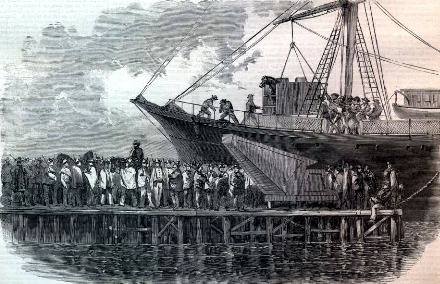 160k | Rhode Island Artillery landing from the steamer USS Bienville at Washington Arsenal, 25 April 1861.