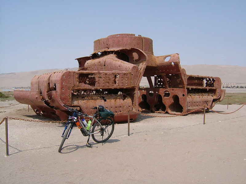 The remains of the USS Wateree's boilers on the shore north of Arica, Chile.