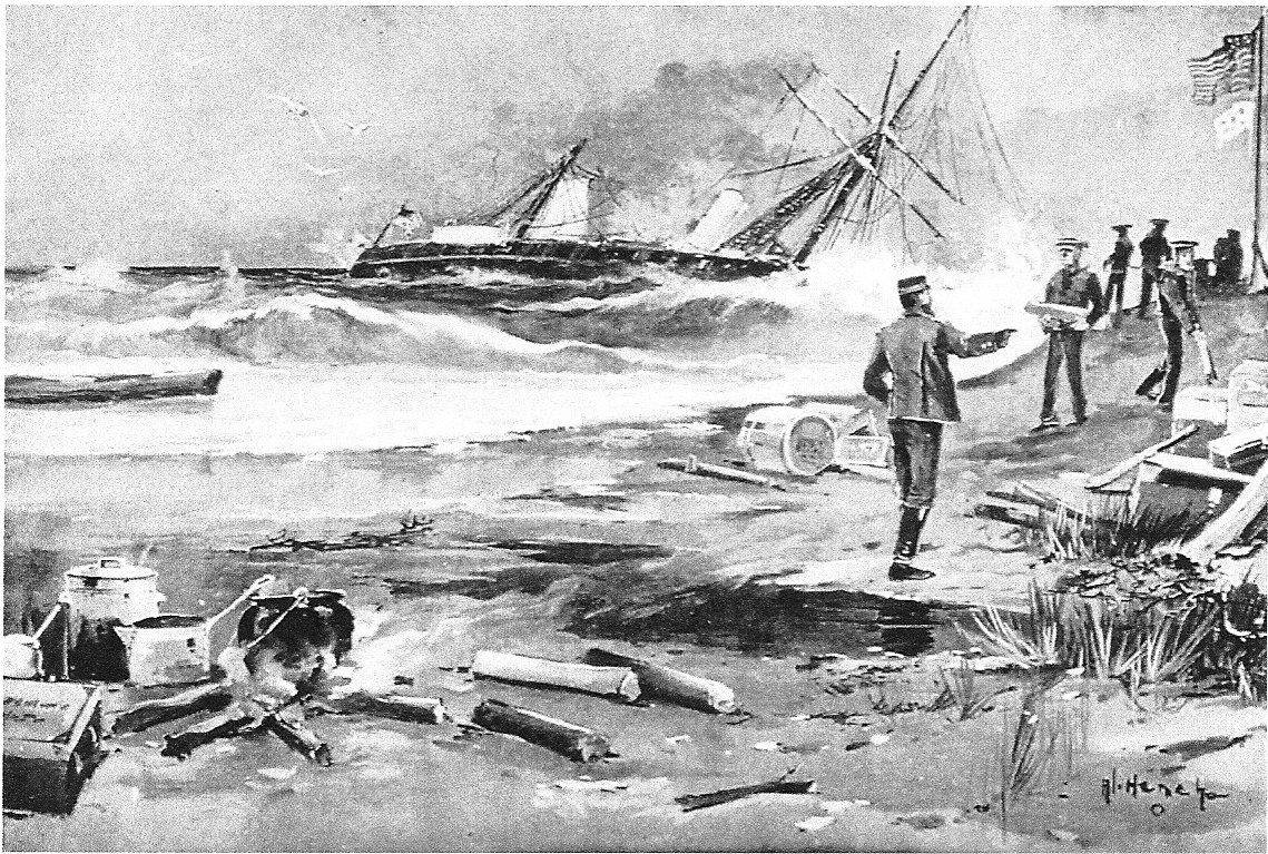 385k | The wreck of USS Despatch on Assateague Island off the Virginia coast, October 1891 Courtesy Mariners Museum, Newport News, VA. |