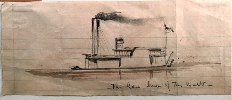 53k | USS Queen of the West sketch for publication for "Harpers Weekly". Measures 7.5x3 watercolor and pencil sketch captioned "The Ram Queen of the West". | Tommy Trampp | |