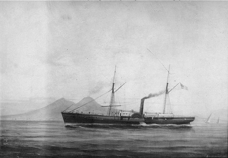 Painting by De Simone, depicting USS Gettysburg under way in the Bay of Naples, Italy, in 1878.