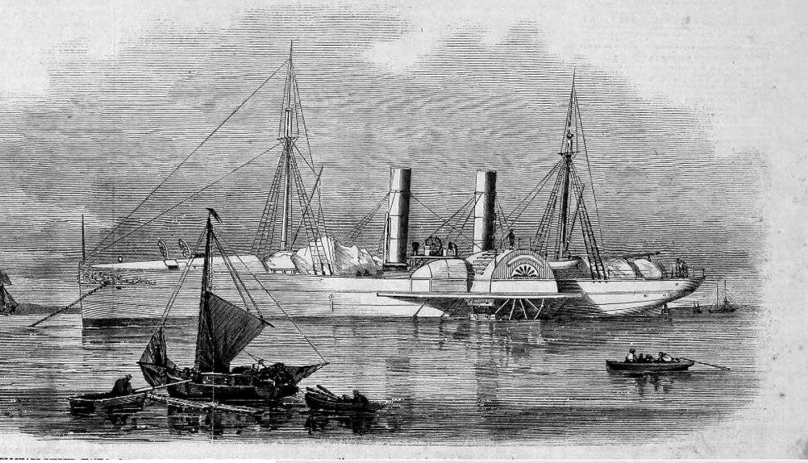 204k | Lithograph of the side-wheel blockade runner SS Wando in port, 1864.