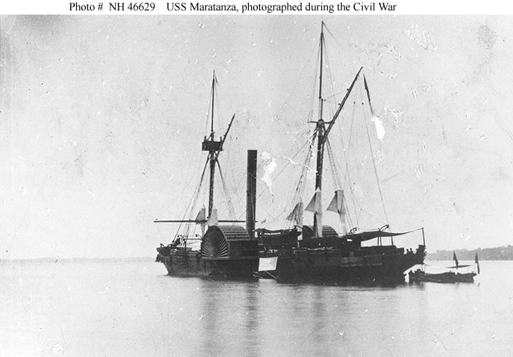 60k | USS Maratanza circa 1862-65. She has windsails rigged for ventilation below decks. US Naval History and Heritage Command photo # NH 46629. |
