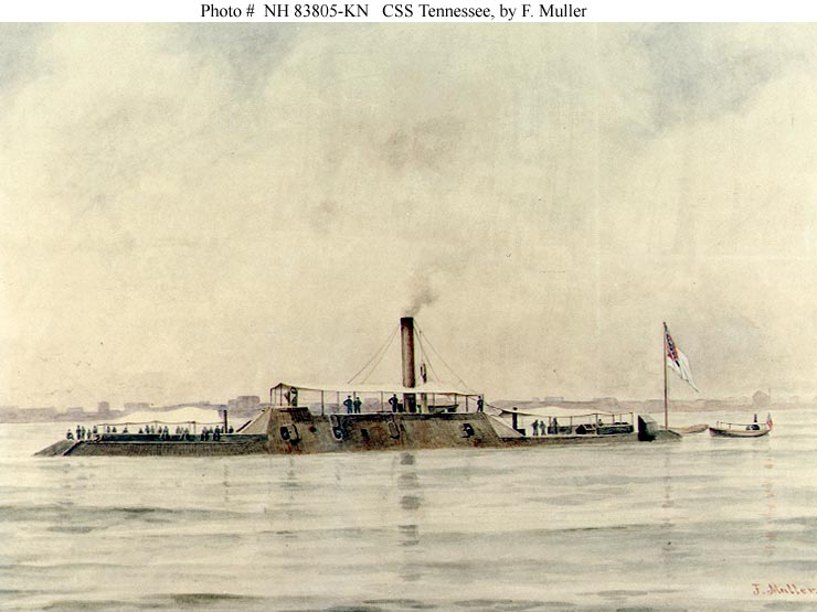 59k | Watercolor by F. Muller, circa 1900 of CSS Tennessee. Courtesy of the U.S. Navy Art Collection, Washington, D.C. US Naval History an Heritage Command photo # NH 83805-KN (Color). |