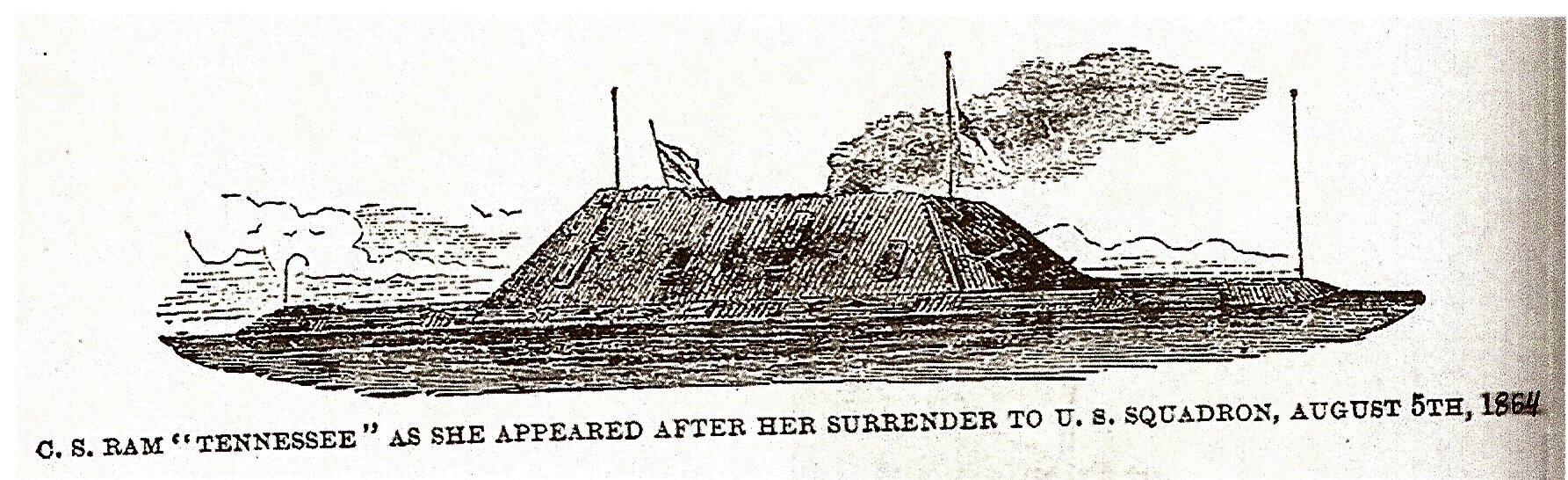314k | CSS Ram Tennessee as she appeared after her surrender to Union naval forces, 5 August 1864. Drawing from "History of the Confederate States Navy" by J. Thomas Scharf. | Tommy Trampp | |