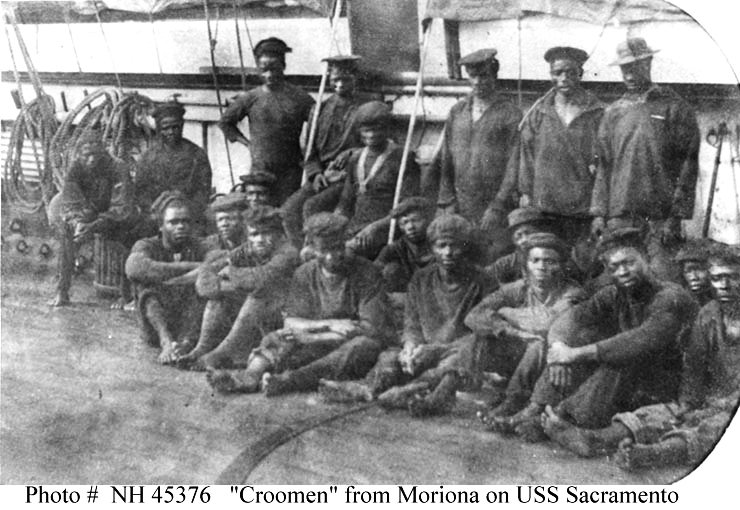 90k | "Kroomen" from Monrovia, Liberia, on board, in January-February 1867, while USS Sacramento was cruising along the west
