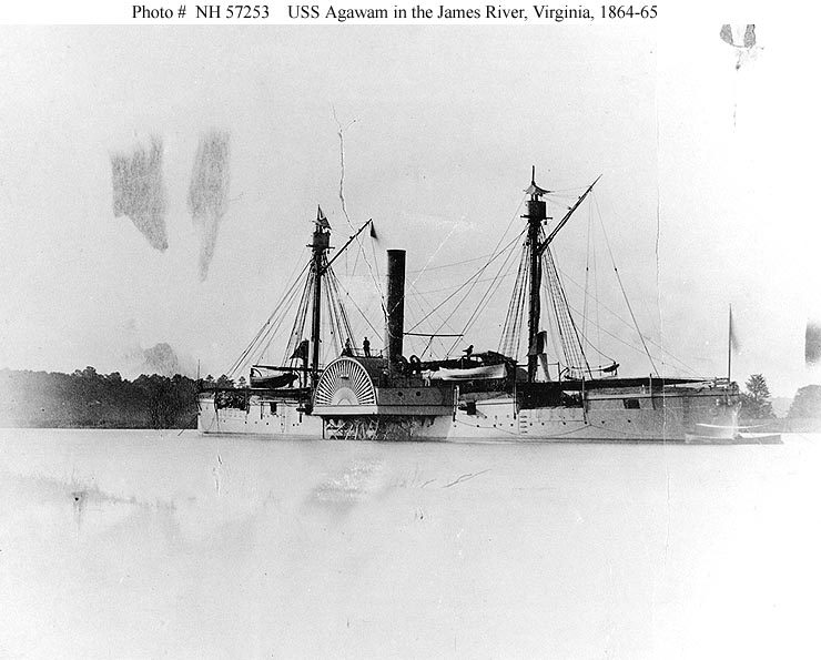 USS Agawam (I) in the James River, VA., 1864-1865. US Naval History and Heritage Command photo # NH 57253 |