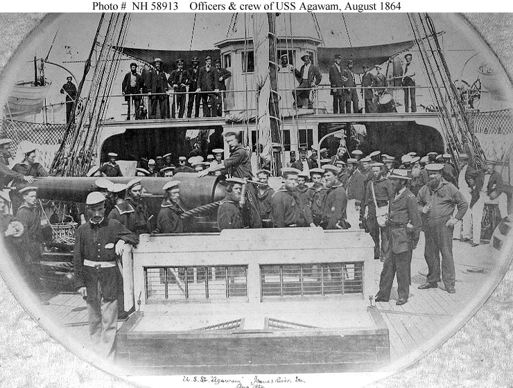 USS Agawam (I) in the James River, VA., July 1864. Photographed by Brady & Company, Washington, D.C. From the collection of Surgeon Herman P. Babcock, USN. Donated by his son, George R. Babcock, 1939