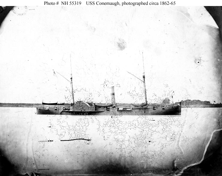 USS Conemaugh at anchor during the Civil War, location unknown. US Naval History and Heritage Command photo # NH 55319 |