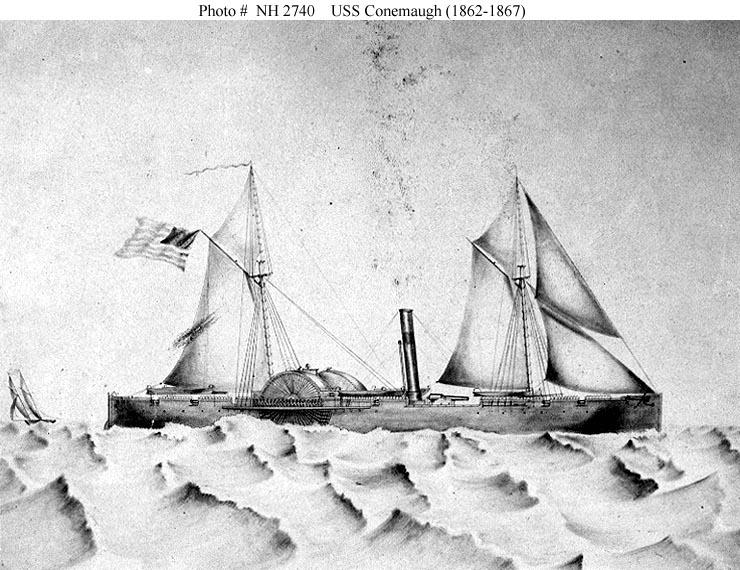 Contemporary photograph of a Civil War era drawing of USS Conemaugh underway. US Naval History and Heritage Command photo # NH 2740 |