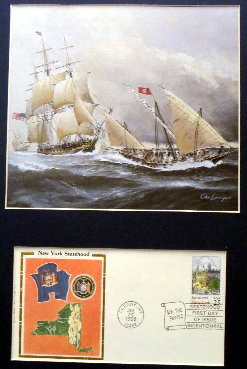 New York 217k USS New York under way during the Barbary Wars driving off Tripolian gunboats.& First Day Cover honoring New York State, Statehood. Tommy Trampp