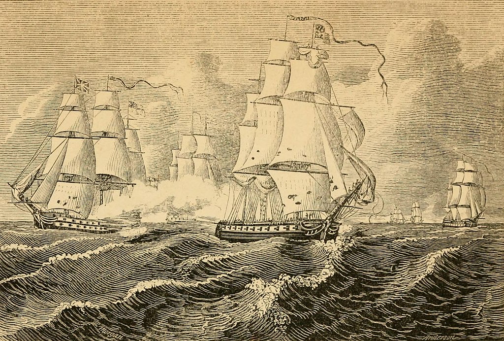 329k | The Continental Navy Brig Reprisal, Capt. Wickes, chased by a British Cruiser. Drawing by William Morgan, engraving by Alexander Anderson (1775–1870). Image from page 493 of the book The Life of Benjamin Franklin, (1848) by Oliver Luther Holley (1791-1861). Publisher G.G.Coolidge & Brother, New York. . | Robert Hurst | |