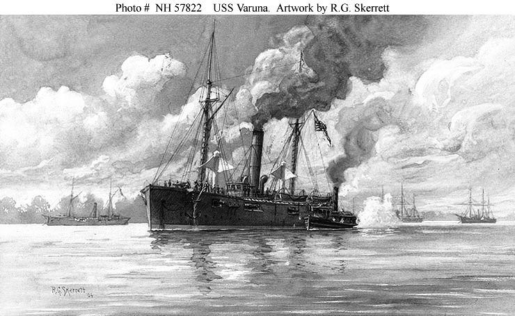 95k | Sepia wash drawing by R.G. Skerrett, 1904 of USS Varuna. Courtesy of the Navy Art Collection, Washington, DC. US Naval History and Heritage Command photo # NH 57822 |