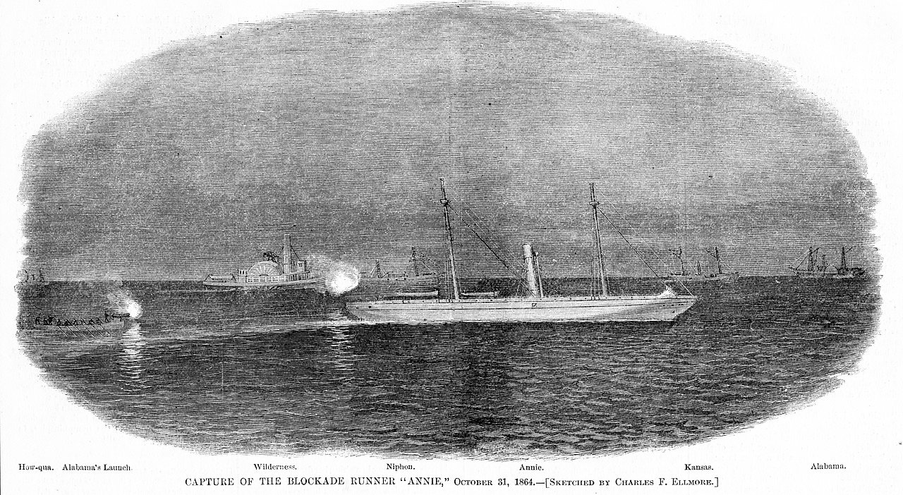 From left to right: USS Howquah; USS Alabama launch; USS Wilderness; USS Nipon; blockade runner Annie; USS Kansas; USS Alabama. Flickr - State Archives of North Carolina |
