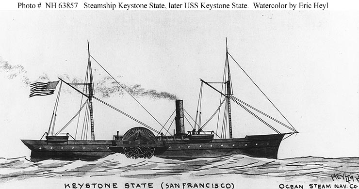 This steamer served as USS Keystone State in 1861-65. After the Civil War she returned to civilian use as SS San Francisco. Courtesy of Erik Heyl.