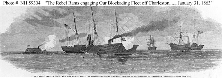 Line engraving published in "Harper's Weekly", January-June 1863, page 117, depicting CSS Chicora and CSS Palmetto State attacking USS Mercedita, with USS Keystone State at right US Naval History and Heritage Command photo # NH 59304 |