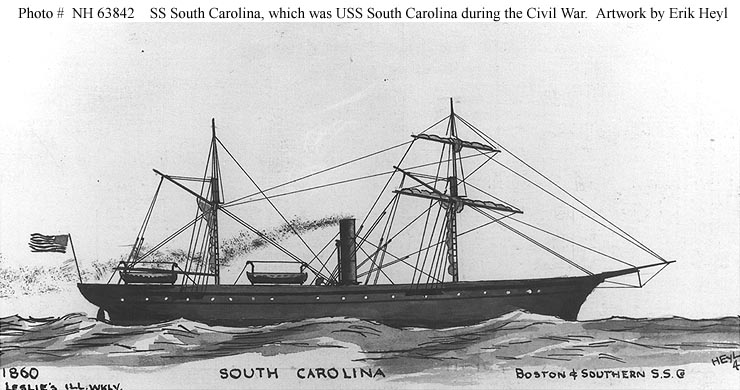 71k | Watercolor by Erik Heyl, 1948, of SS South Carolina, in 1860, painted for use in his book "Early American Steamers", Volume I. Renamed SS Juniata upon returning to commercial employment in 1866.