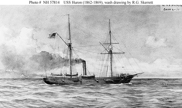 99k | Wash drawing by R.G. Skerrett, 1901, of USS Huron. Courtesy of the Naval Historical Foundation, February 1939. US Naval History and Heritage Command photo # NH 57814. |
