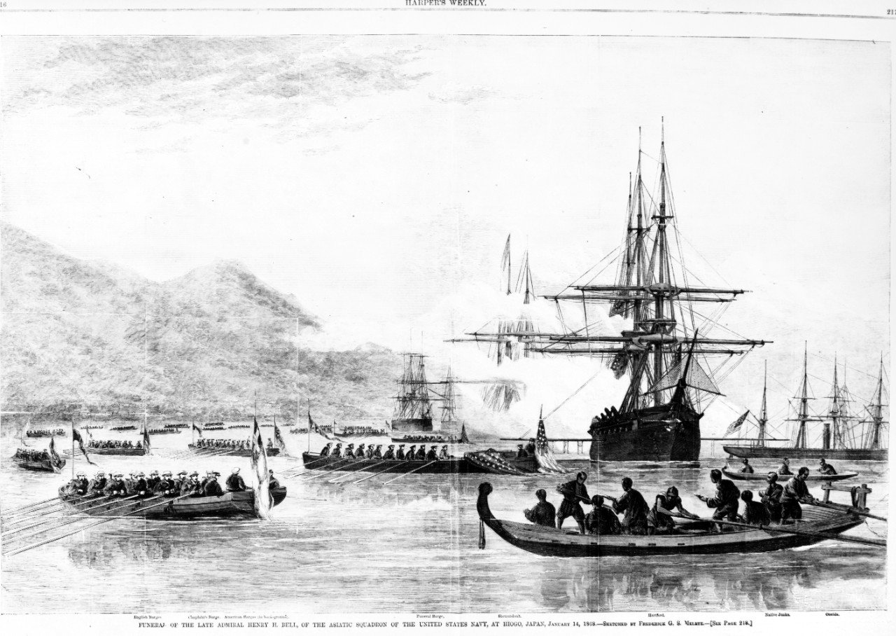 239k | Image of the "Funeral of the Late [RADM.] Henry H. Bell USN, of the Asiatic Squadron of the United States Navy, at Hiogo, Japan,