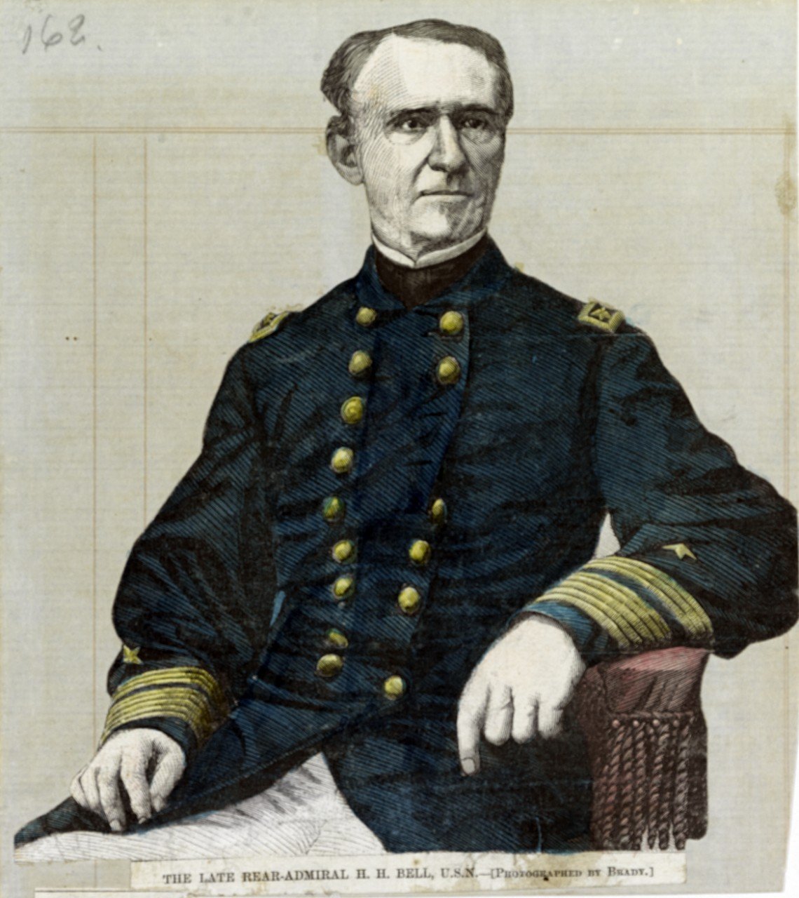 14 January 1868. Engraving after a sketch by Frederick G.S. Melbye, published in Harper's Weekly, 4 April 1868. Rear Admiral Bell was drowned in a boat accident off