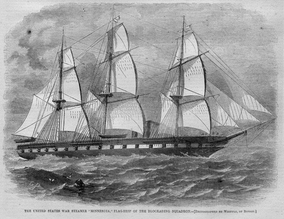 USS Harriet Lane; USS Wabash; USS Minnesota; USS Monticello and USS Pawnee and Courtesy of the U.S. Navy Art Collection, Washington, D.C. US Naval History and Heritage Command Photo # 58130 |