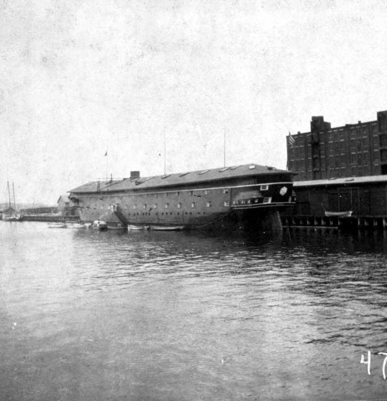 117k | USS Minnesota housed over as a training hulk, possibly while assigned to the Massachusetts Naval Militia in 1895-1901. US Naval History and Heritage Command, Photo # NH 106687, donation of Charles R. Haberlein Jr., 2009. |