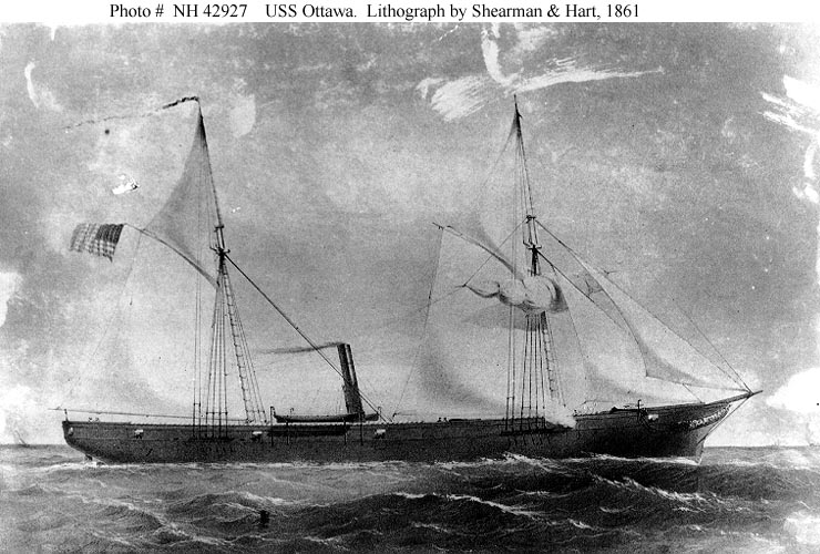 96k | Lithograph of USS Ottawa by Shearman & Hart, New York, 1861.