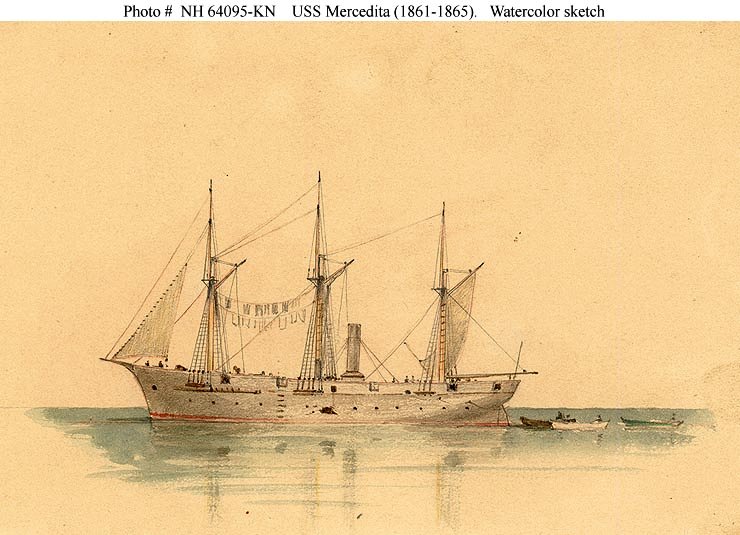 86k | Watercolor of USS Mercedita at anchor. 1861-65.