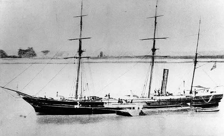 Refitted as a 830 ton steam sloop for commerce raiding, armed with one 9 inch pivot gun and six 32 pounders, by Naval Secretary Stephen Mallory. Photograph published in