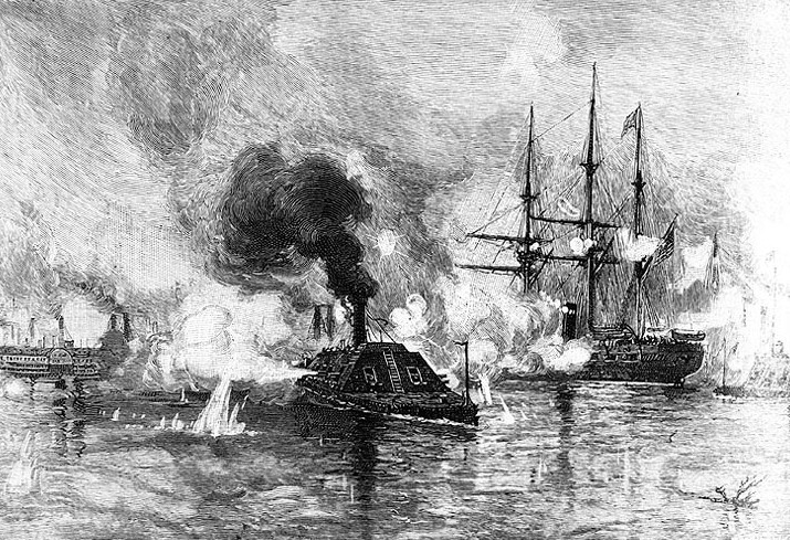 her engines failed during this encounter with Essex, 6 August 1862. US Naval History and Heritage Command photo # NH 59042 |