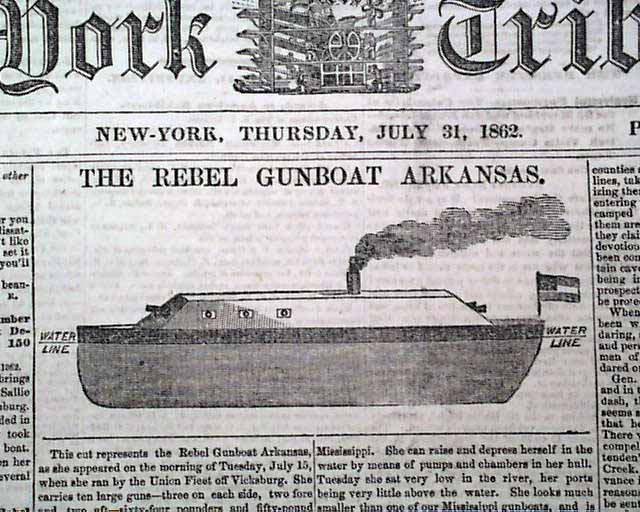 87k | CSS Arkansas as it appeared to readers of the New York Tribune, 31 July 31, 1862. Author unknown. |