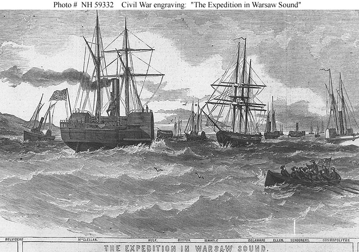152k | The Expedition in Warsaw Sound Line engraving, probably published in "Harper's Weekly", January-June 1862 volume. It depicts