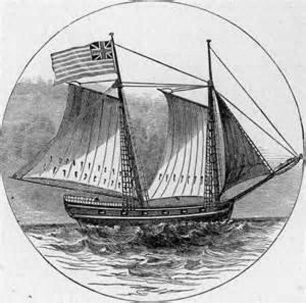 56k | Illustration of Royal Savage under full sail. | Tommy Trampp | |
