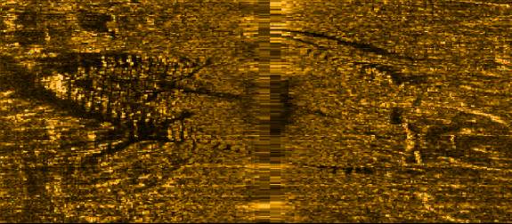 42k | Sonar scan of the sunken CSS Black Warrior. Courtesy of North Carolina, Department of Cultural Services. Image from Battle of Elizabeth City |