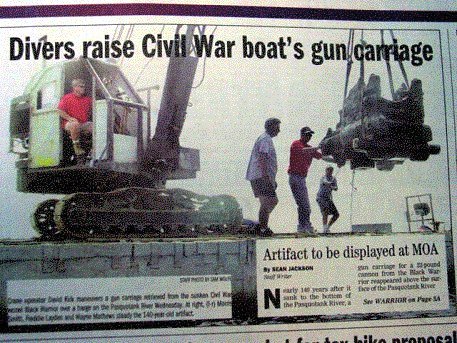 71k | A gun carriage raised from the wreck of CSS Black Warrior, 8 August 2001, that will be displayed at the