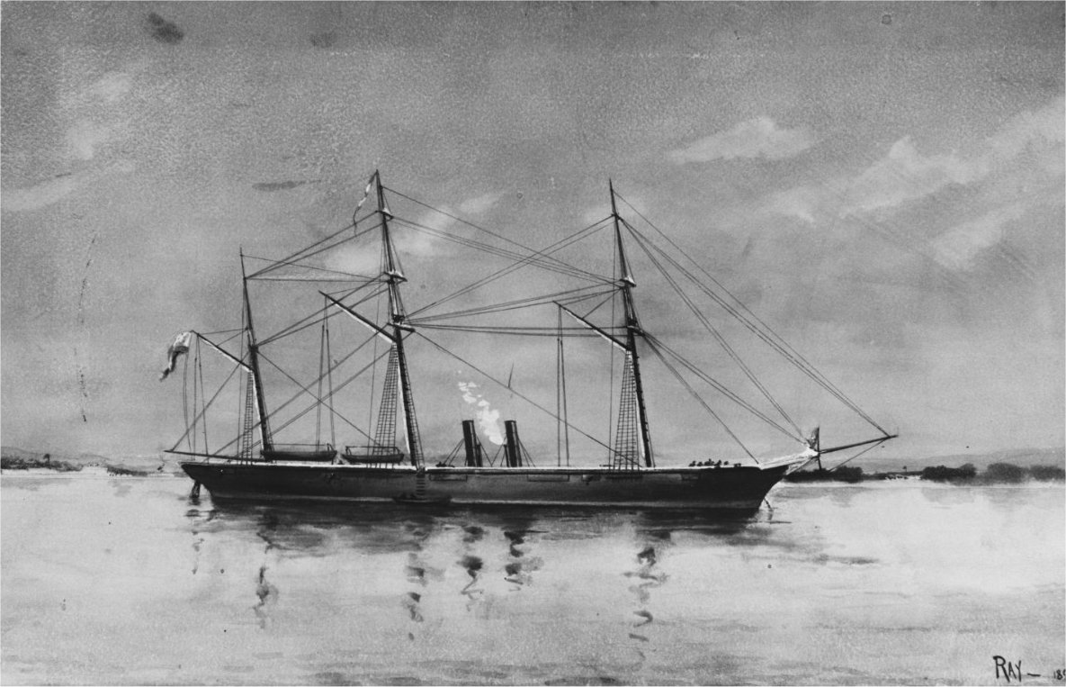 by USS Wachusett at Bahia, Brazil, 7 October 1864. Enlarged version of US Naval History and Heritage Command photo NH 59355 |