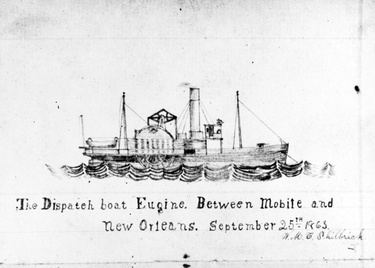 182k Drawing by William M.C. Philbrick "The Dispatch Boat Eugenie Between Mobile and New Orleans September 25th 1863".