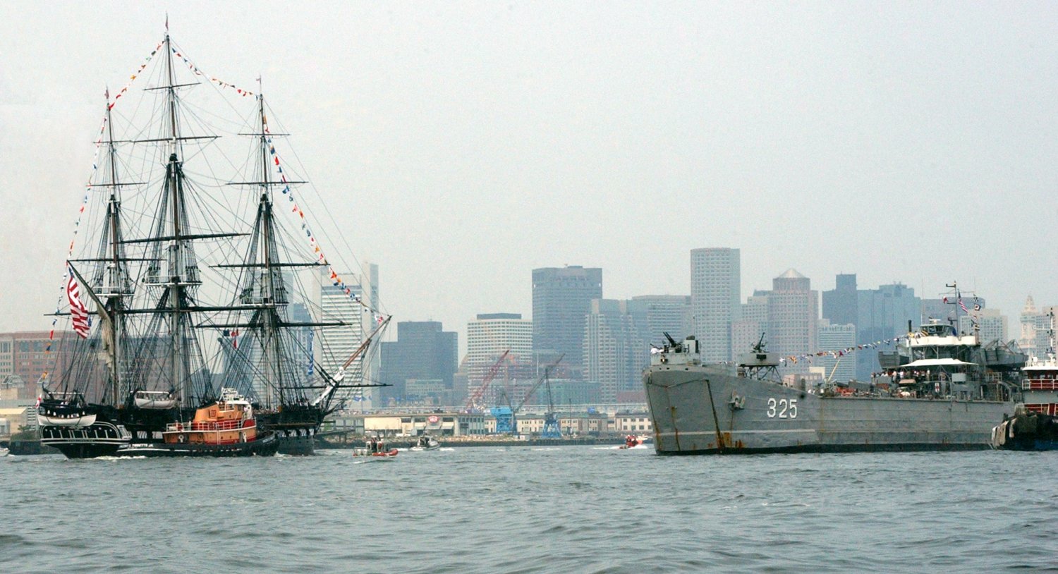 293k | LST-325 is in the foreground as U.S. Coast Guard patrol boats and a tugboat escort USS Constitution, "Old Ironsides", out to Island Castle Hill in south Boston prior to firing a 21-gun salute, on 11 June 2005. This event officially starts Navy Week Boston, a series of community events sponsored by the Navy Office of Community Outreach. Constitution is the oldest commissioned vessel in the world. US Coast Guard photo # 050611-C-4938N-328 by Public Affairs Specialist 3rd Class Kelly Newlin US Navy photo # 050611-N-8110K-137 by MC1 David Kaylor. |