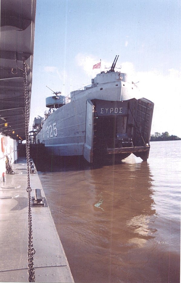 132k | M/V LST-325, ex Syros, seen here mid-voyage from Greece, via Gibraltar and Nassau, to final destination Mobile AL, circa late-2000 to January 2001. Manned by volunteer members of the USS LST Memorial Inc | Contributed by: Joe Radigan MACM USN Ret Source: Lawrence County (LST-887) web site |