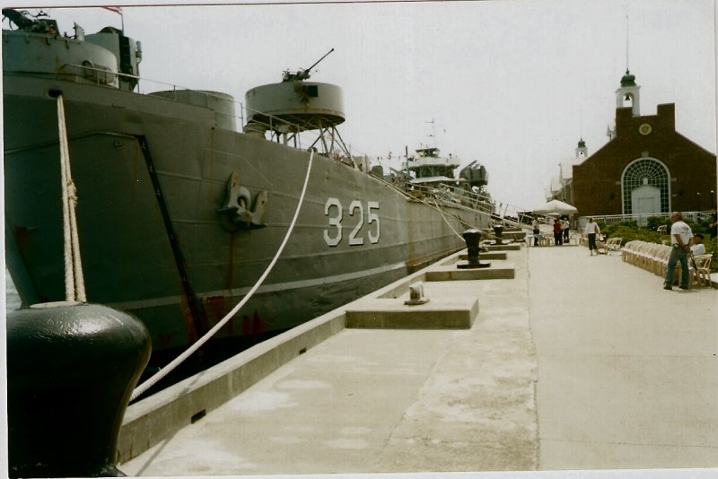 69k | LST 325 moored at the Massachusetts. Maritime Academy. Buzzards Bay, Cape Cod, 6 June 2005. | Photo by Bill Fraser | |