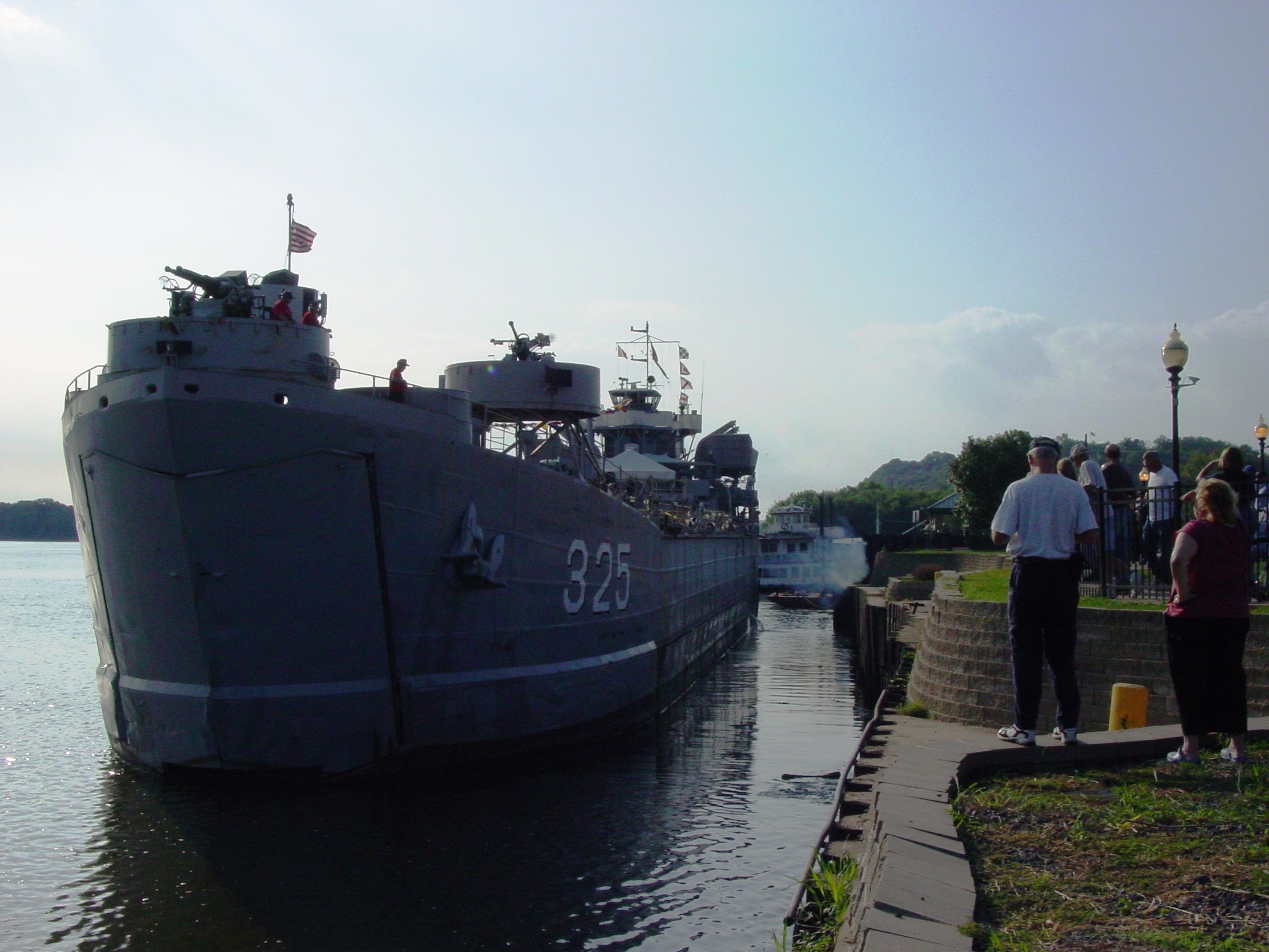 398k | LST 325 makes her way through Newburgh Locks and Dam on its way to Jeffersonville, IND., 24 August 2009.