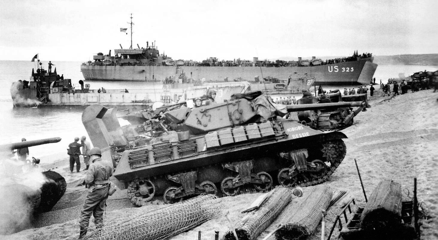 90k | USS LST-325 unloading vehicles on Slapton Sands, 22 January, 1944. | Robert Hurst | |